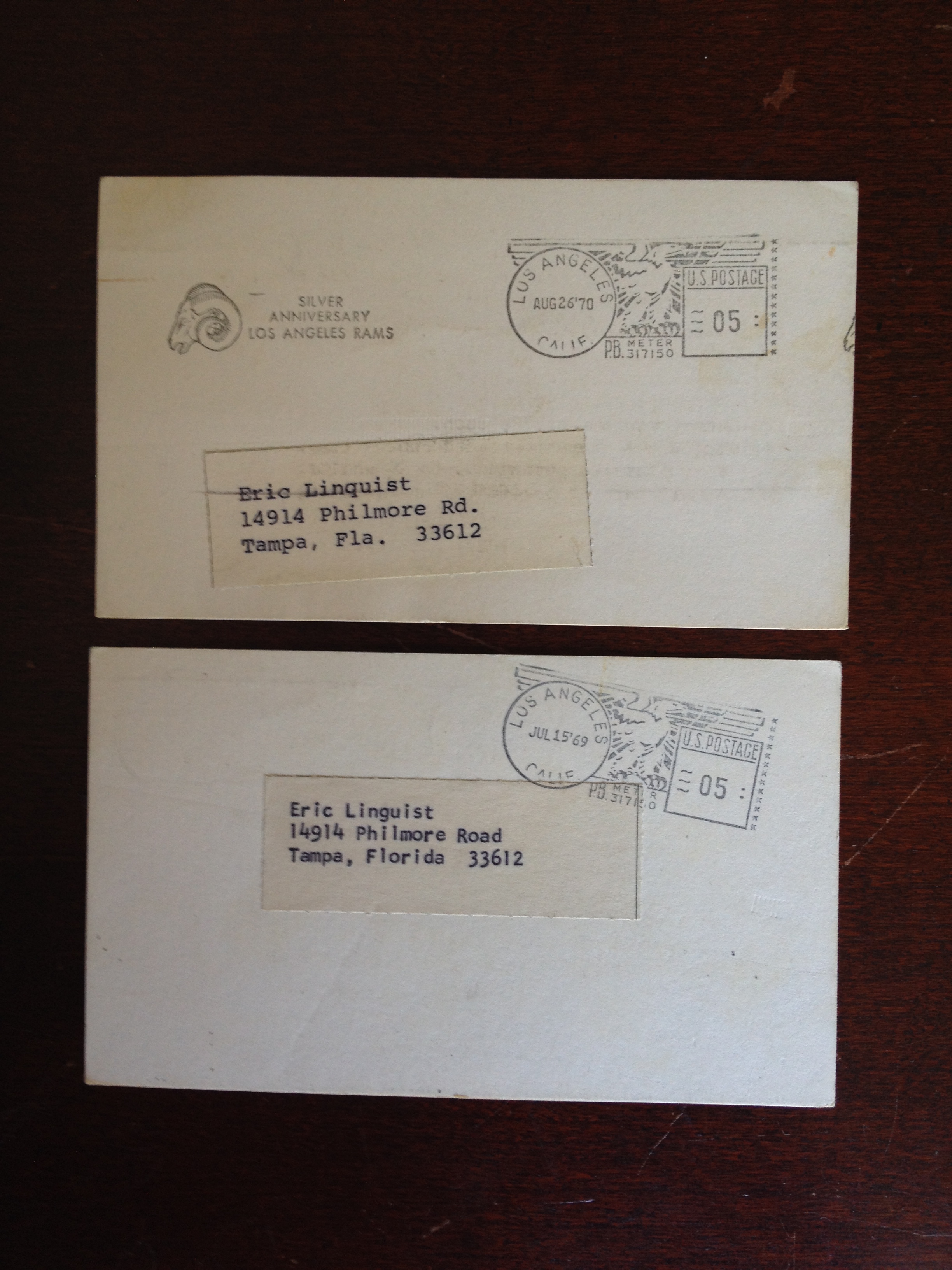 Los Angeles Rams 1971 Team Photo with Provenance Postmark of Jan 17, 1972