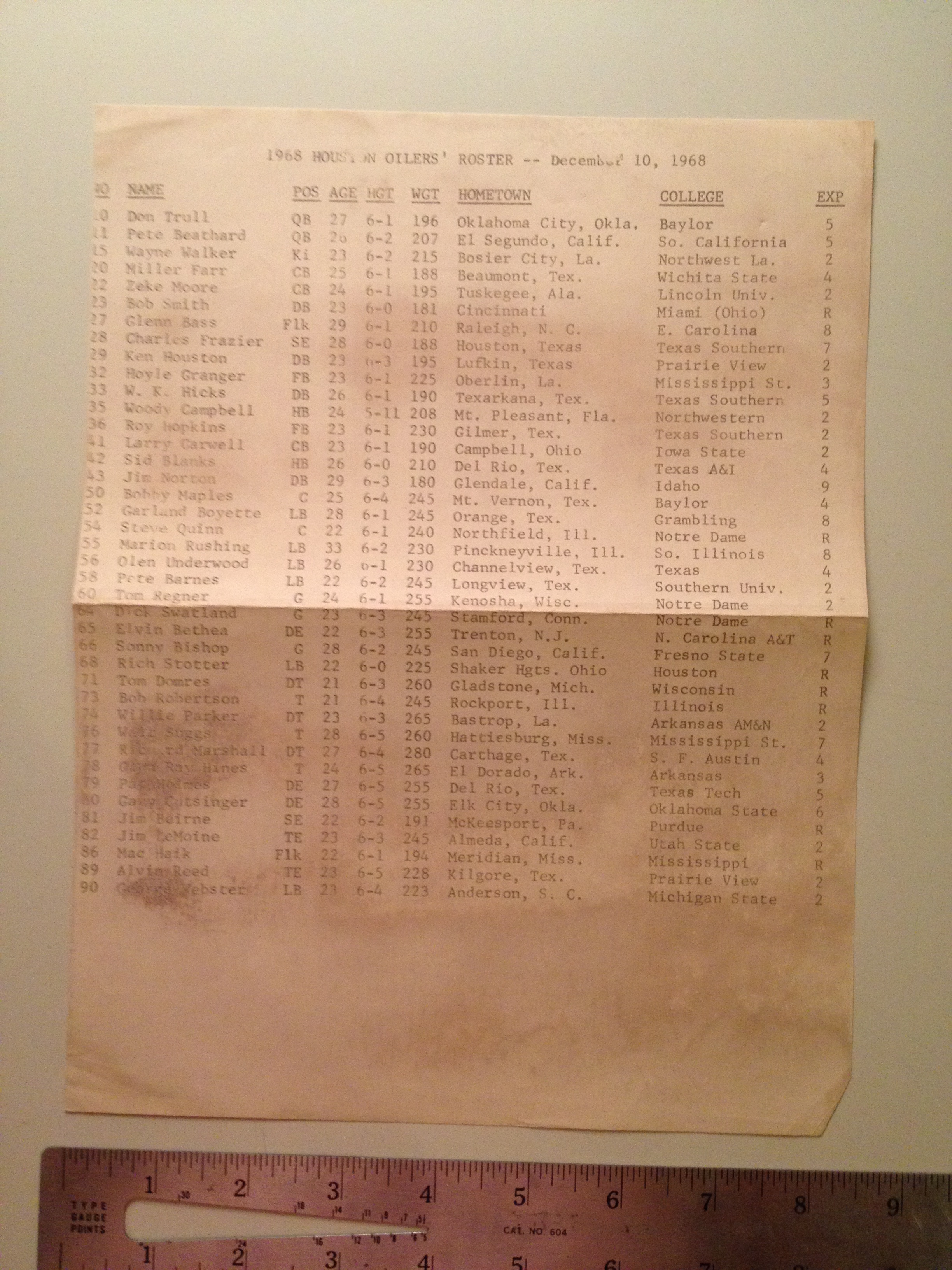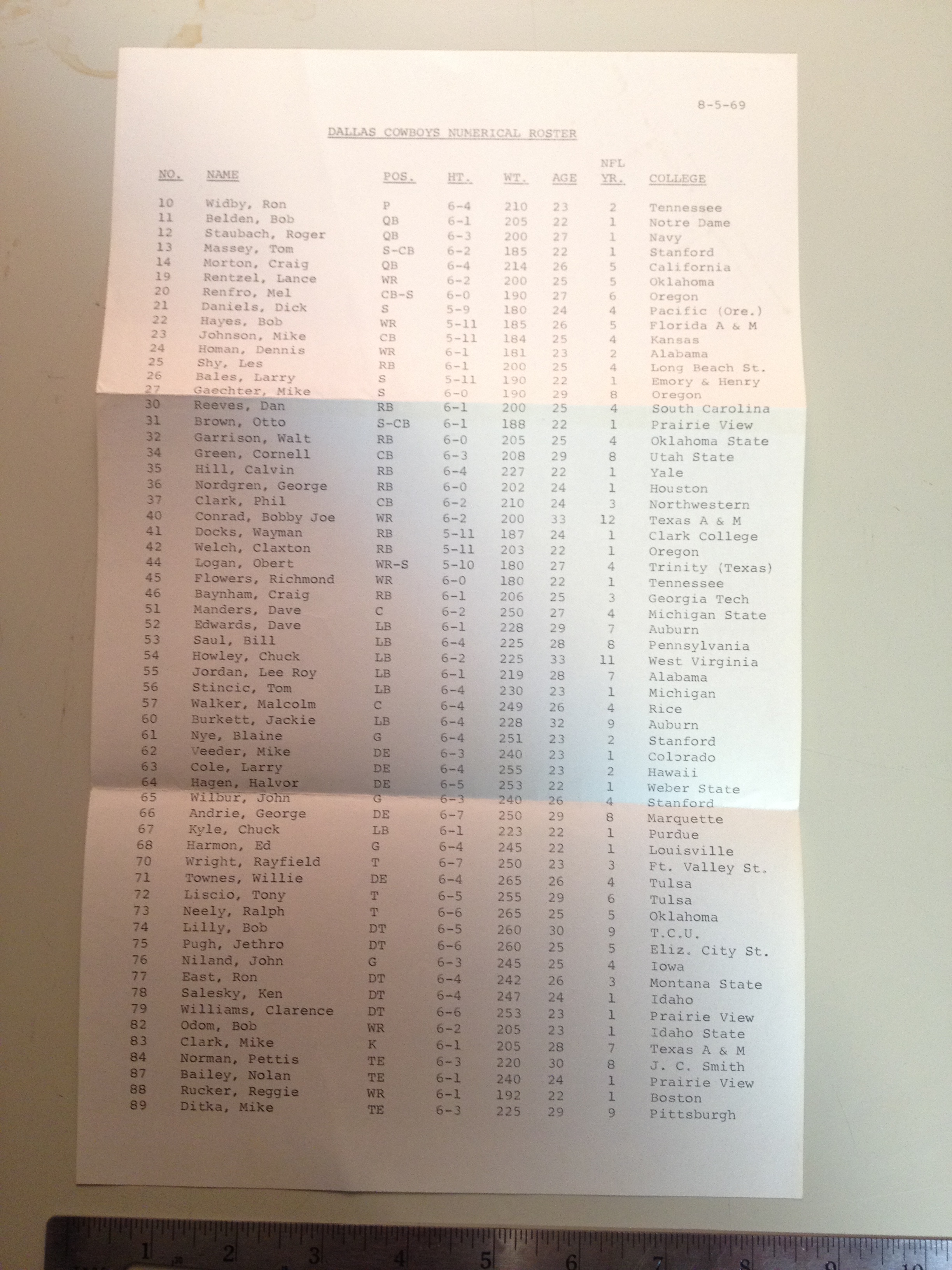 $50.00 1969 Team Issued Mimeograph of Cleveland Brown Players Autographs with 10/14/1969 postmarked envelope for provenance. Went to the National League Championships that year only to be defeated by the Vikings. Heavy hitters on the 1969 team: Leroy Kelley, Lou Groza, Ernie Green, Paul Warfield, Dick Schafrath, Ron Snidow, Milt Morin and more.
